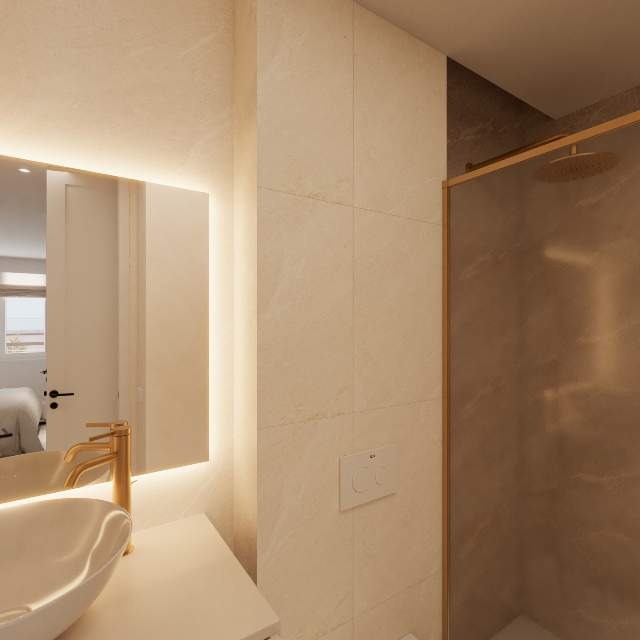 tres amplios dormitorios, dos de ellos en suite , todos con acceso a la terraza de 14 m2.