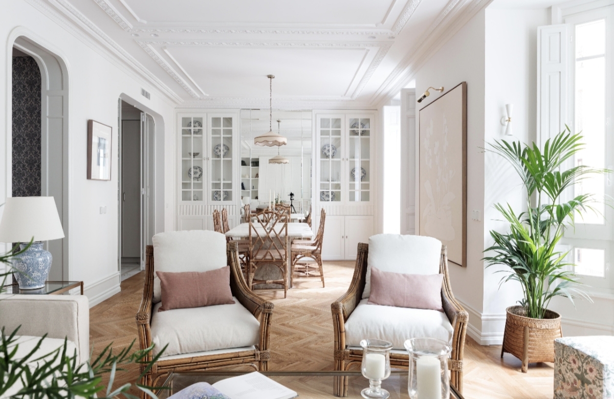 Ubicada en la segunda planta de un edifico de corte clásico. Esta vivienda conserva su estilo señorial, pero sus interiores se han adaptado a un interiorismo más actual, donde el estilo logra más interés visual y dinamismo. Una casa con ambientes acogedores, llenos de personalidad, donde la luz, sus espacios y el gran confort que transmite, la hace única. Esta vivienda nos hace soñar, es mucho más que un hogar.