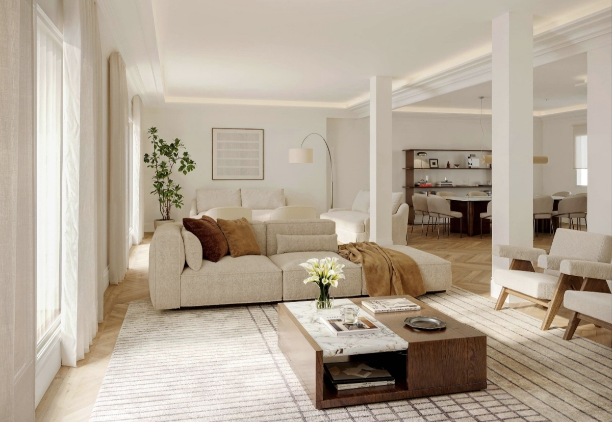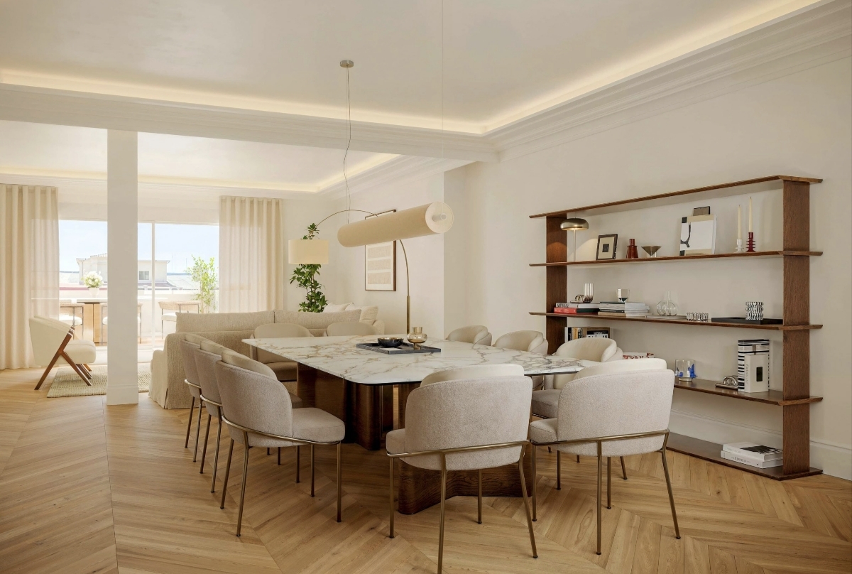 Se respira una relajada sofisticación en ésta vivienda, diseñada por RICARDO AROCA, sobre un lienzo inmejorable. Orientación Sur, donde la luz, baña cada una de sus estancias. Elegante, calmo, cálido y sofisticado. El estilo de esta vivienda despide una belleza que nace de las líneas puras y los materiales nobles.