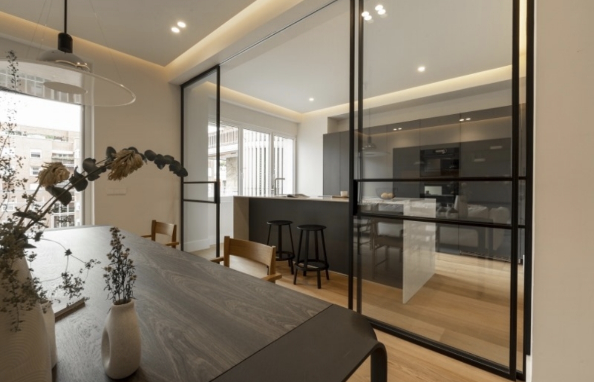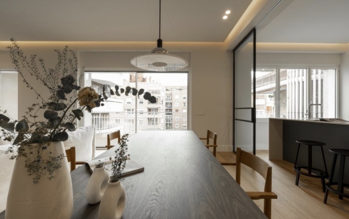 Un contenedor perfecto, limpio y con fuerza. Un cambio radical de espacios donde la luz fluye en cada rincón de esta vivienda , donde los acabados con revestimientos de gran nobleza crean un atmósfera limpia y sofisticada, gracias a su impecable reforma,