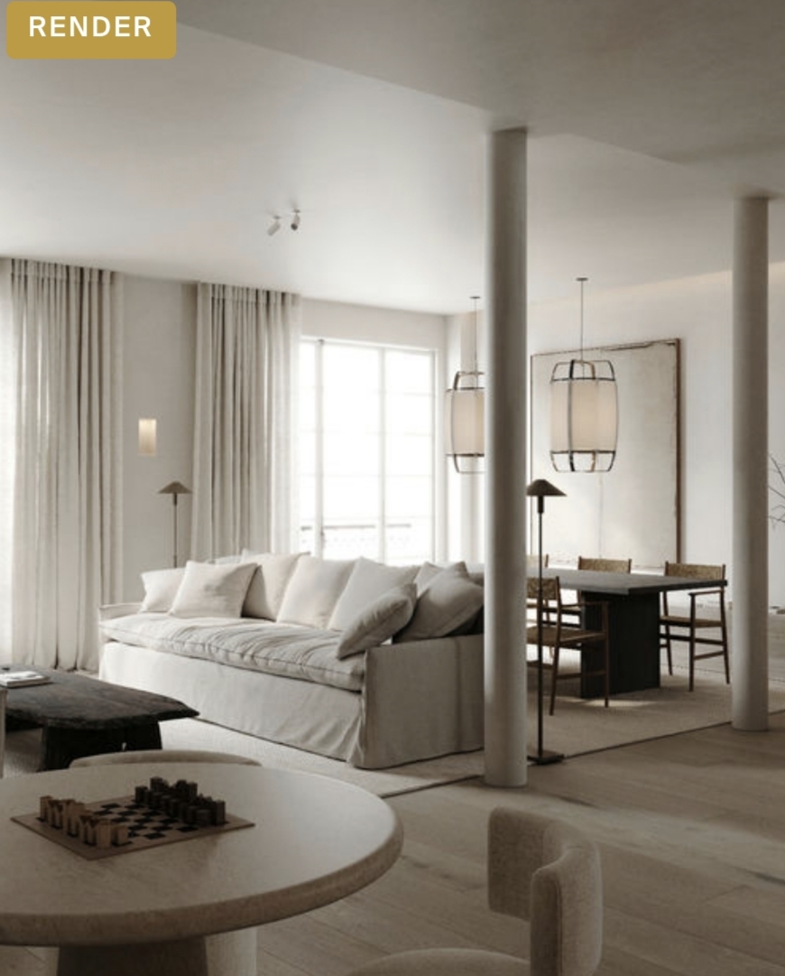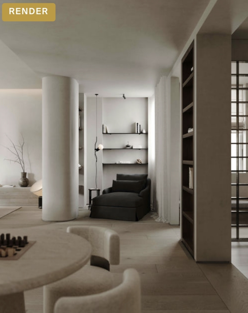 Con techos de más de 3 metros. Se propone redistribuir los espacios, donde se conecten varios espacios en el gran área social( salón, comedor, cocina y aseo de cortesía) . En la zona privada tres dormitorio en suites