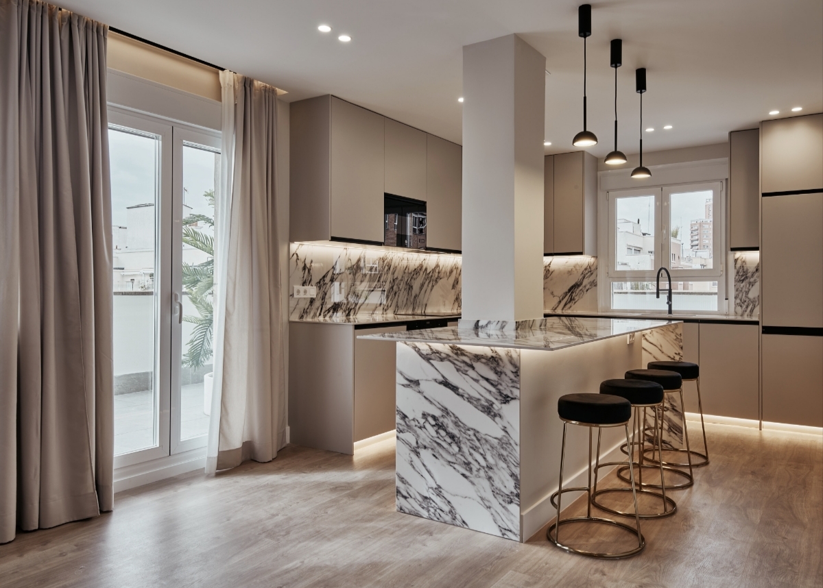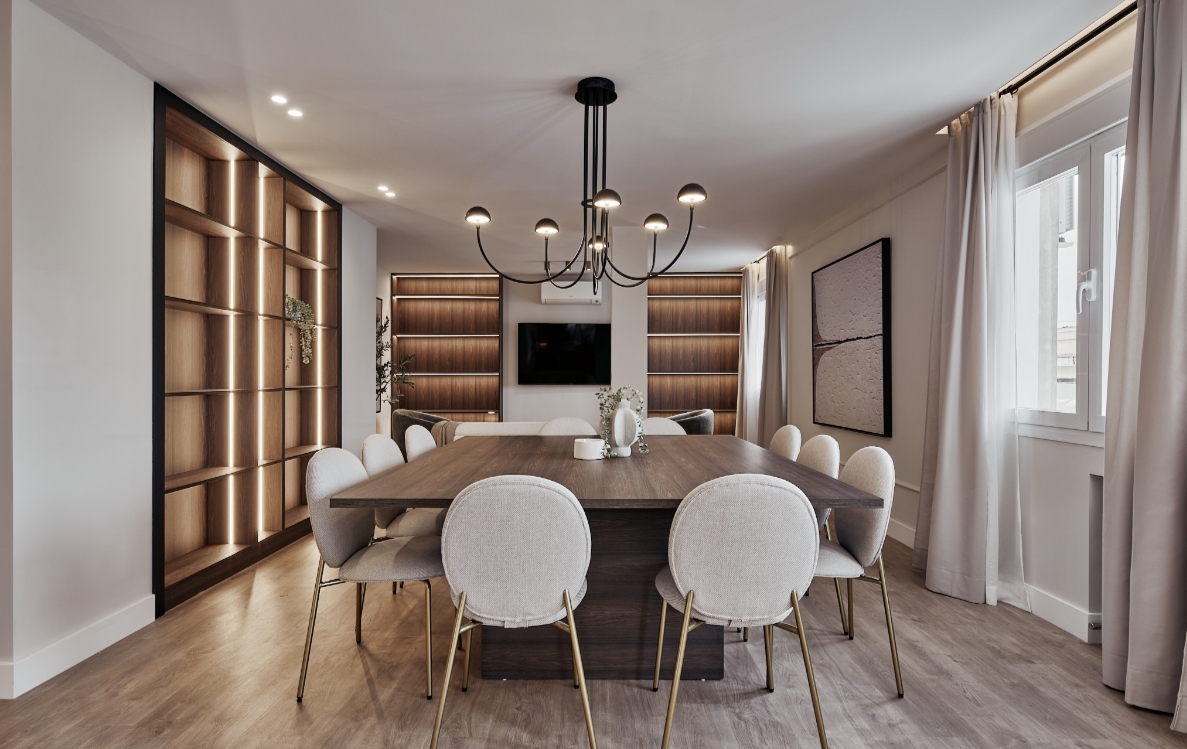 Descripción: En el corazón del Barrio de Salamanca y en una de sus calles más reconocidas y una terraza de 55m, un espacio excepcional para disfrutar del exteriorVivienda exterior de 158m2, en la séptima planta de un edificio residencial de 1964. La propiedad ha sido completamente reformada con un diseño contemporánea y una cuidada selección de materiales y acabados, creando espacios luminosos y equilibrados.Amplio salón -comedor y cocina integrada, totalmente equipada. En la zona privada, tres dormitorios, dos de ellos en suite. Dispone de cuarto de lavandería independiente,Mostrar toda la descripción